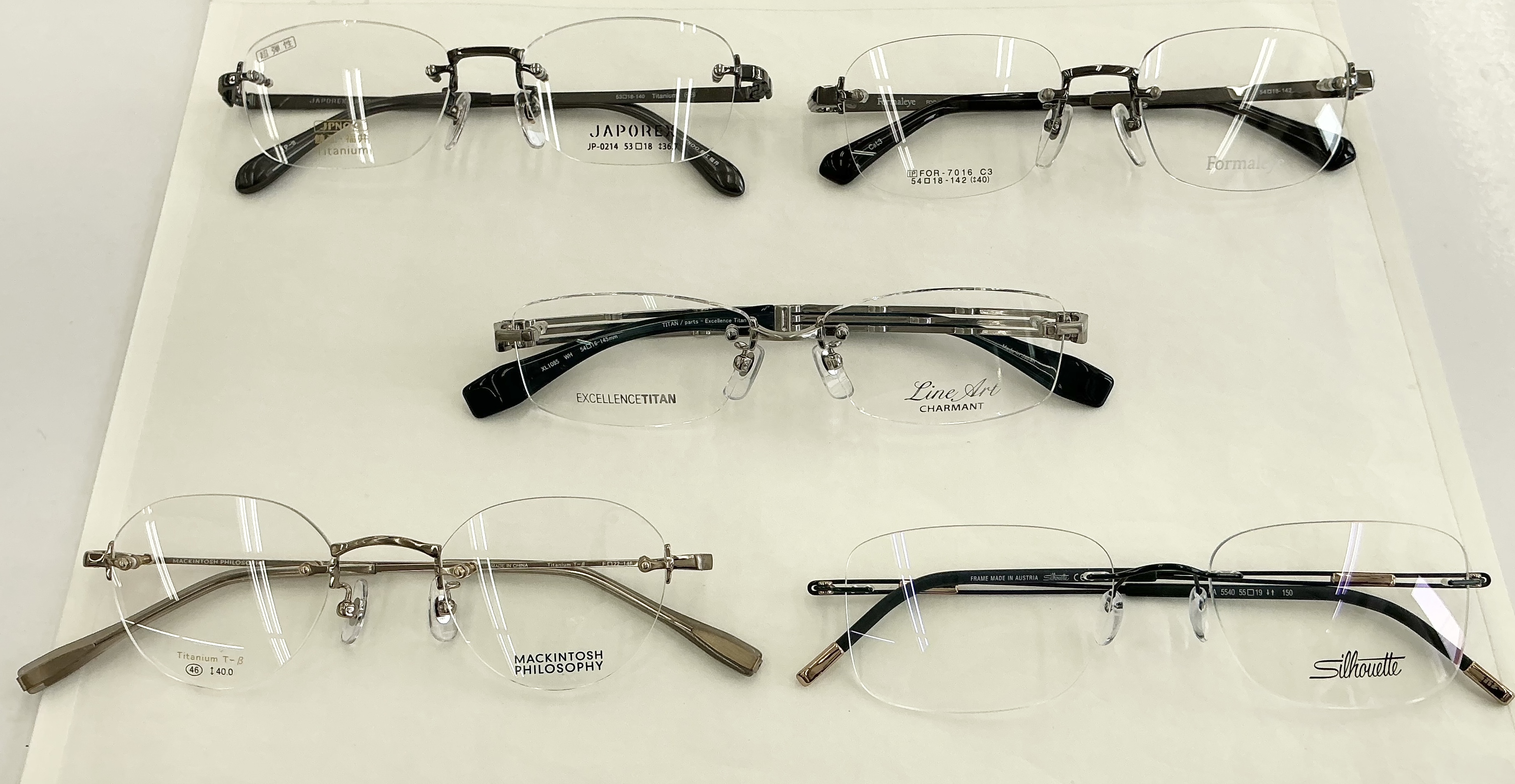 こちらは、レンズを入れる枠がなく、レンズをネジで固定するタイプのメガネです。
