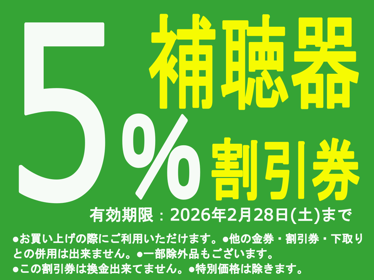 補聴器5%割引 2/28(土)迄